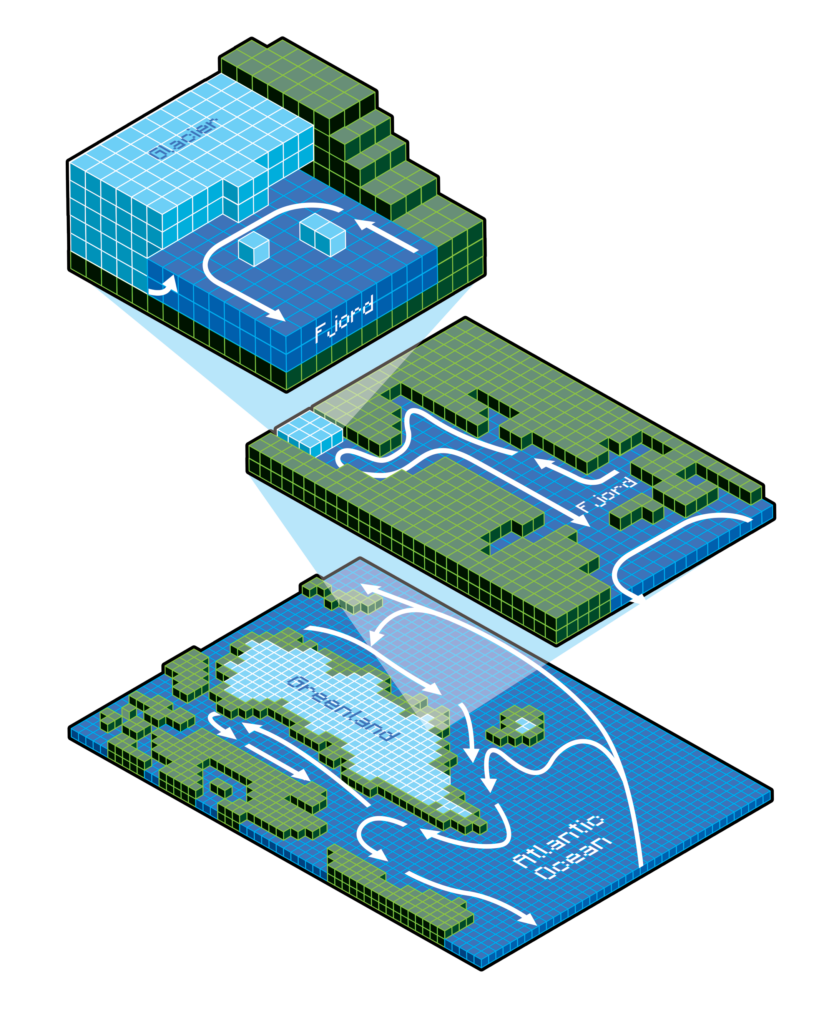 The current generation of computer models of the Earth’s climate don’t fully capture how Greenland’s glaciers ‘feel’ the ocean. They often treat the glacier fronts as static, missing how ocean melting and iceberg calving interact with each other. We want to change that.
